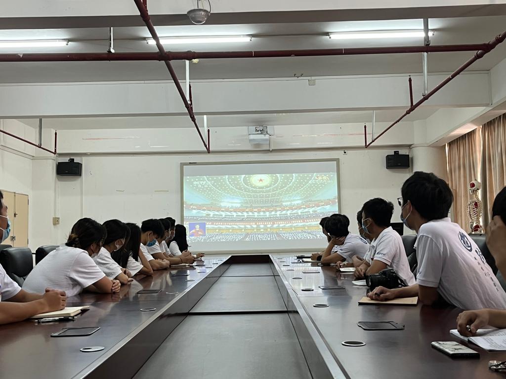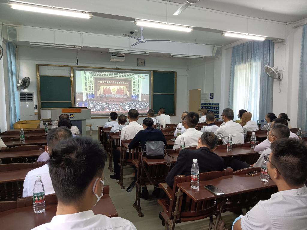 学院组织党委委员、纪委委员、领导干部、师生党员代表45人集中在海滨校区教学楼218室看了直播。学工人员组织学生22人在湖光校区体育馆会议室集中观看直播,同时组织共青团员和普通学生以集中和分散、线上与线下相结合的方式收看收听了直播。全院共63名师生代表、856名学生通过电视、新媒体、新闻网站、广播等多种形式自行收听收看了党的二十大开幕盛况。
