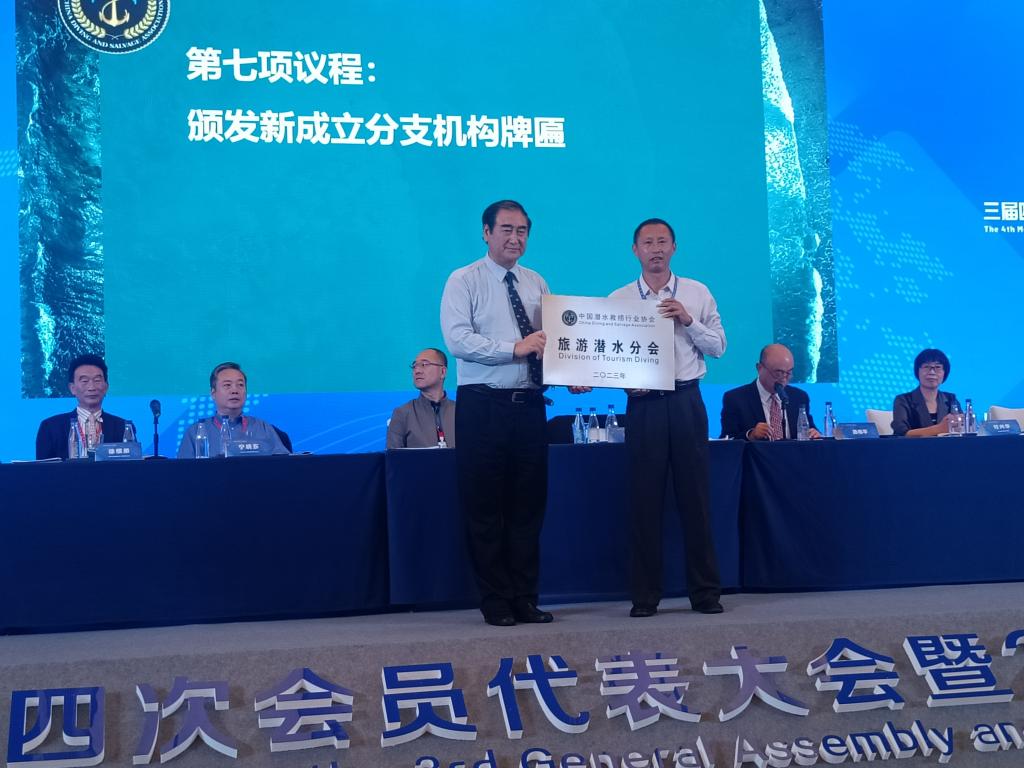颁发协会旅游潜水分会牌匾。