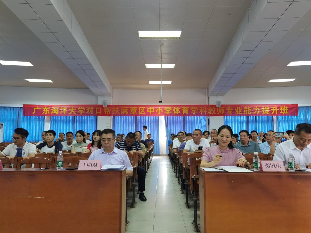 对口帮扶麻章区中小学体育学科教师专业能力培训班在广学楼328开班,麻章区教师发展中心谢敏庆副主任、黄传庆副书记,学校教务部副部长姜晓丹、动漫在线
