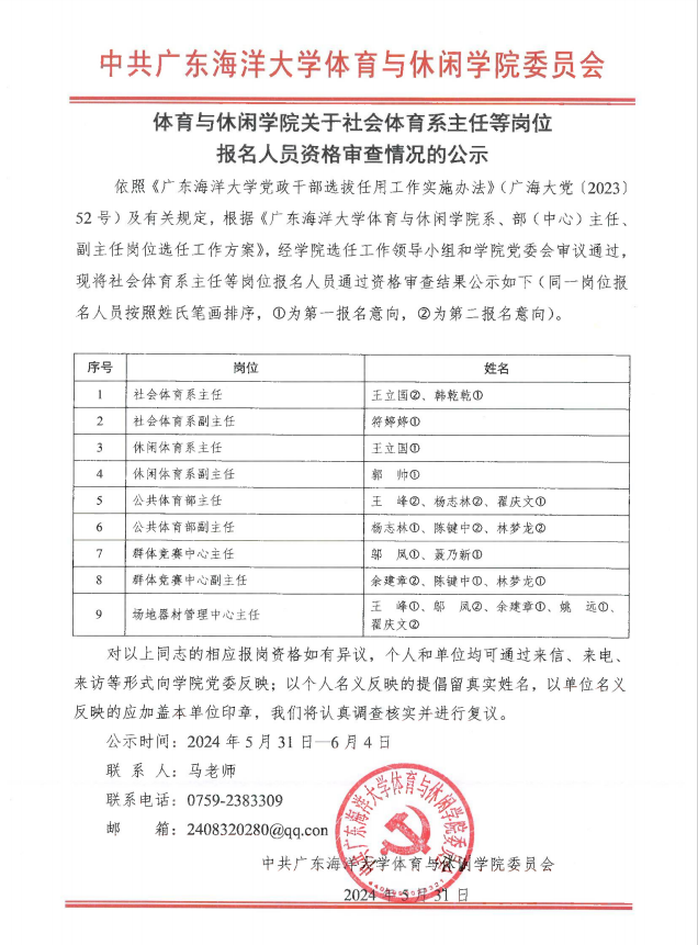 动漫在线 关于社会体育系主任等岗位报名人员资格审查情况的公示