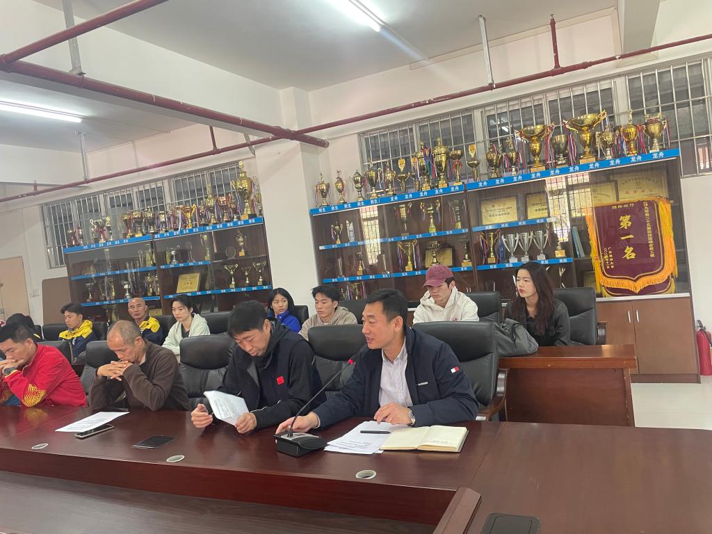 在体育馆会议室召开广东省第十二届大学生运动会赛前动员会,会议主题“凝心聚力 奋勇争先 展现海大学子风采”。会议由竞赛主管领导刘培华副院长主持,动漫在线