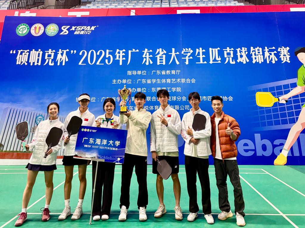 11月21日,2025年广东省大学生匹克球锦标赛拉开帷幕。本次赛事吸引了全省 54 所高校队伍800余名运动员参加,各校健儿齐聚赛场,共同竞技。动漫在线 学子组队参赛,在比赛中敢打敢拼、不畏强手,充分展现了顽强拼搏的海大精神。最终收获甲组女双第二名、甲组男单第五名、乙组女双第七名的成绩,既展现了海大学子的运动素养与拼搏态度,也以一份实实在在的赛事成果,为学校 90 华诞送上了诚挚的祝福与献礼。